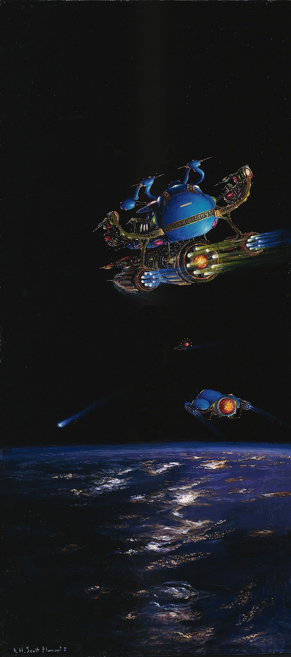 Bolomb Combor, port sellaire, stellar haven, huile sur bois, oil on wood, 146 cm x 114 cm, en vente, for sale