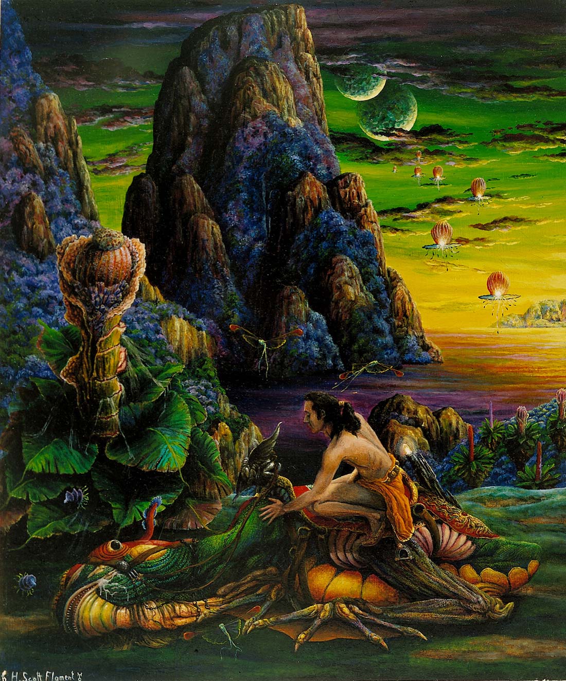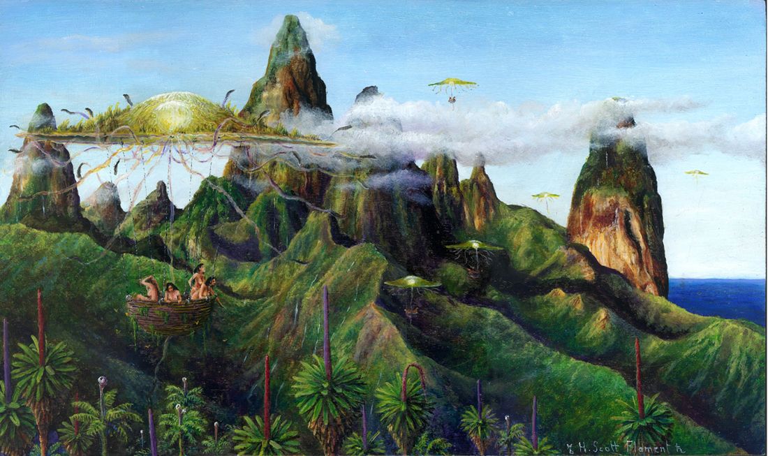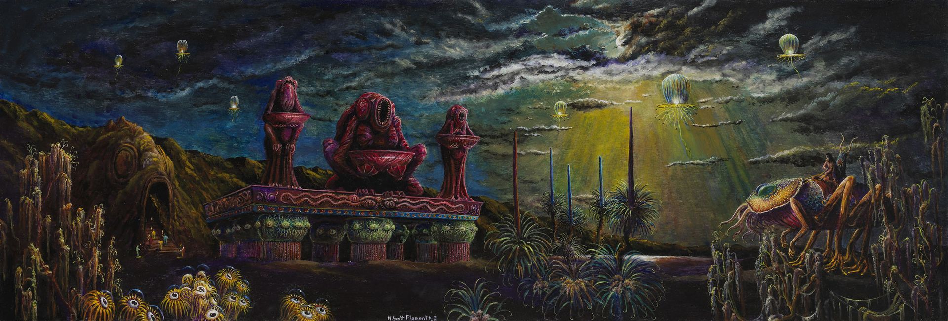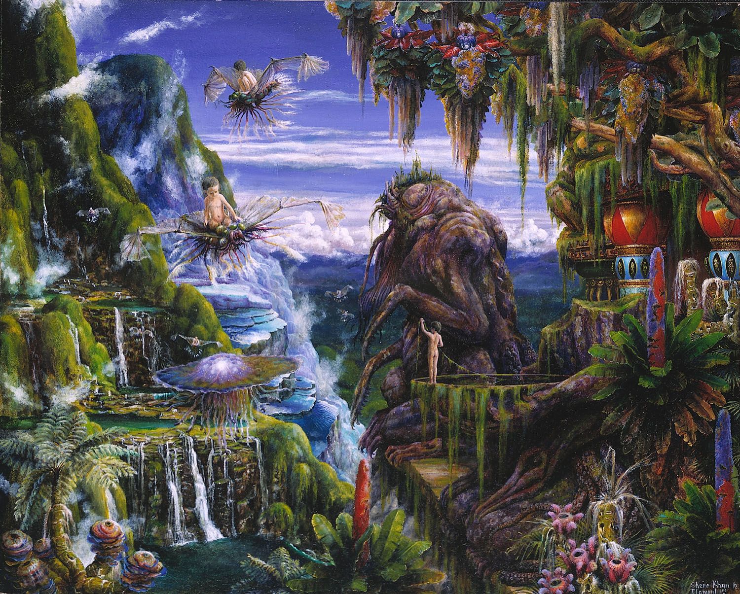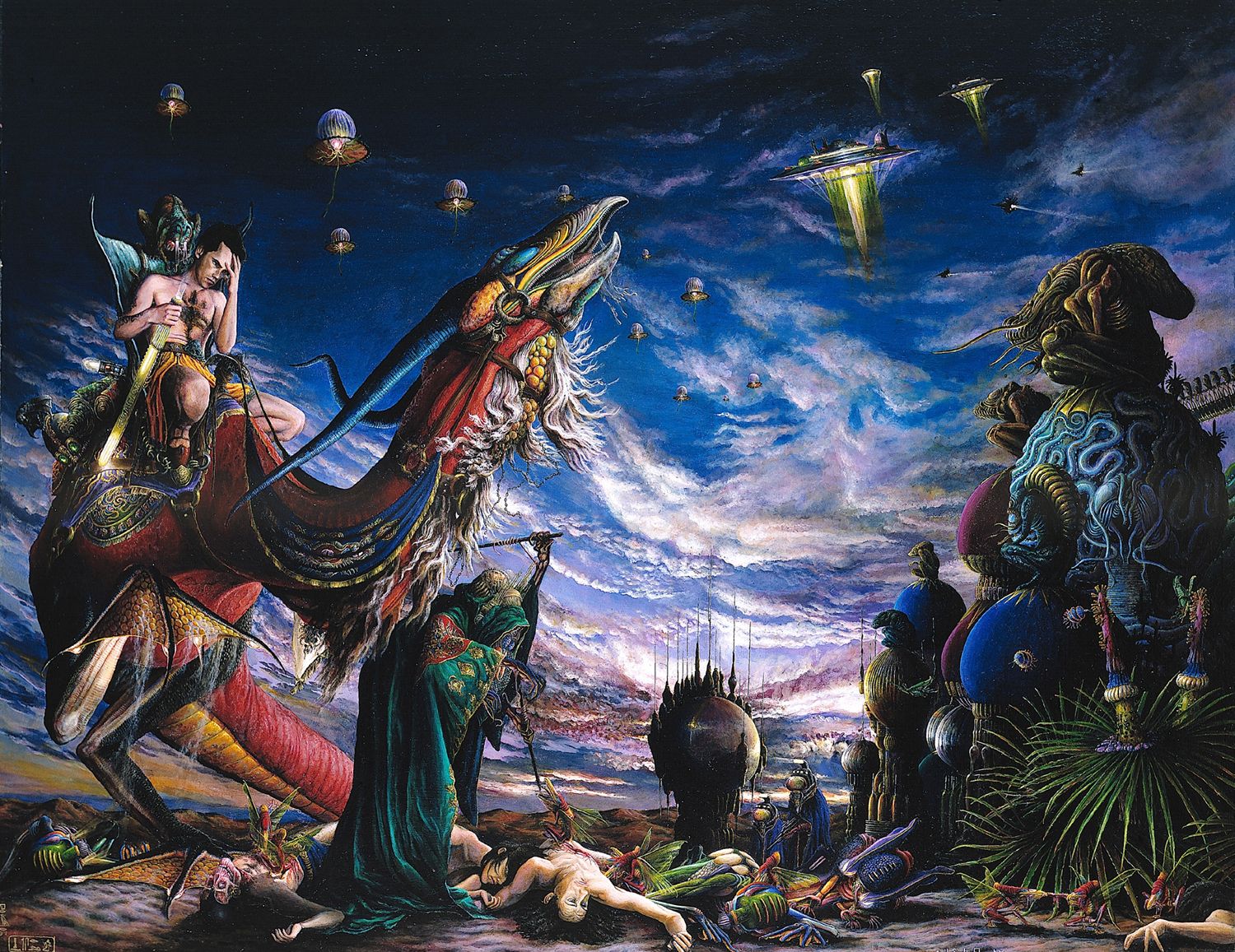 Les héritiers du Gondwalor, huile sur bois, oil on wood, 130 cm x 97 cm, collection particulière, private collection