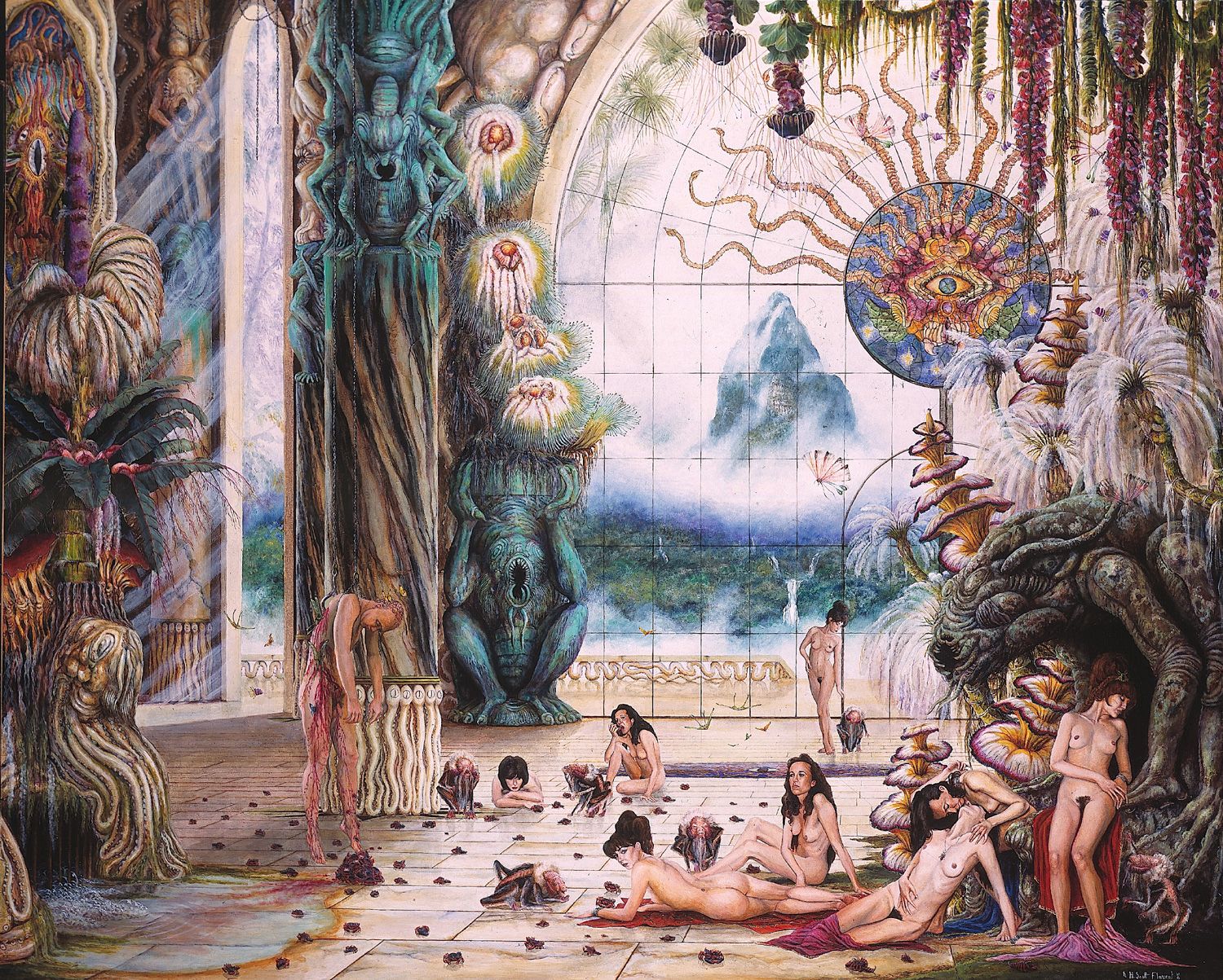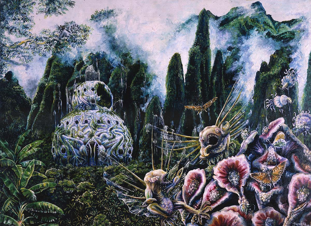 Le jardin du sorcier, huile sur bois, oil on wood, 130 cm x 162 cm, collection particulière, private collection
