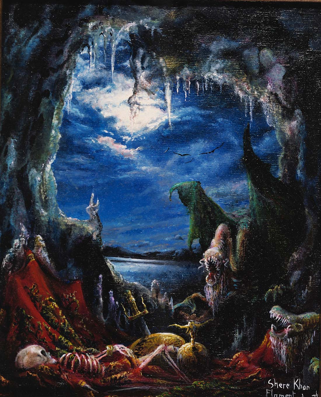 Cap sur l'île des nécromanciens, oil on wood, huile sur bois, 38 cm x 46 cm, collection particulière, private collection
