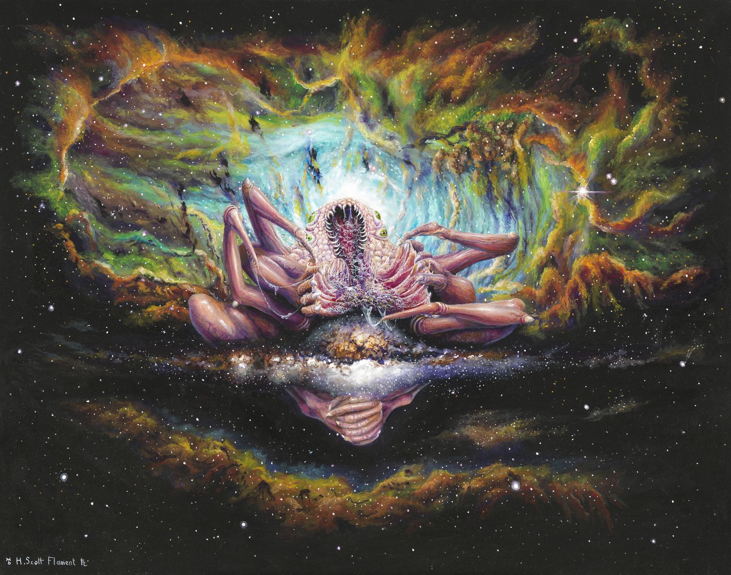 La fleur de l'abîme, Huile sur bois, oil on wood, 110 cm x 100 cm, collection particulière, private collection