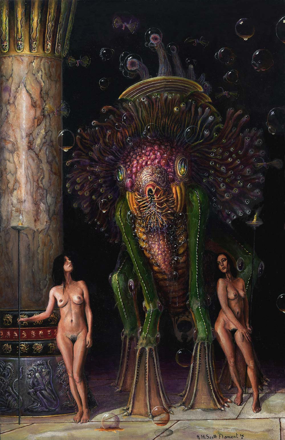 The elves of the hookah, oil on wood, 63.78"x51.18", private collection